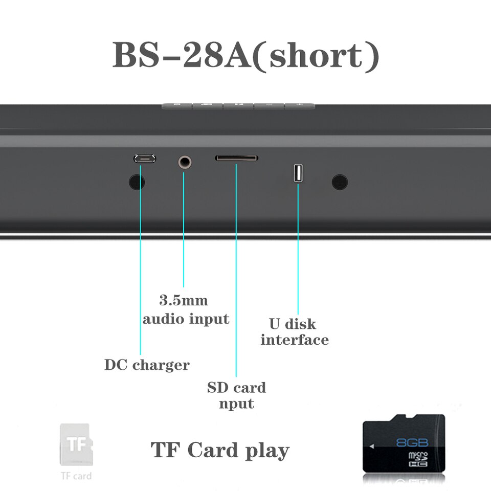 Bluetooth,RCA,3.5mm Aux, TF card (BS-28B long)